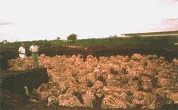 excavated pits for structures some kind of white “pinnacles” protruded almost