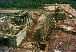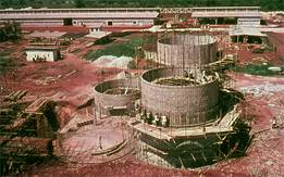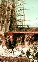 the excavation pit for cement silos (Ted Hoskins and Otto Werner) at left and