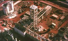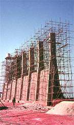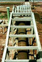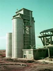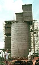 advanced for the Raw Meal Silos at left and for the Gypsum Crusher at right.